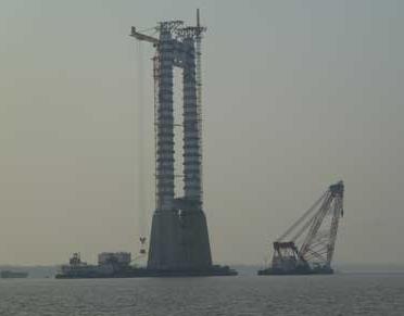 中塔施工现场远景图,哈尔滨俊楠短视频营销有限公司是国内第一家将复合润滑涂层用于桥梁润滑系统,国内第一家将鞍座之间摩擦系数达到0.04,桥梁鞍座与座体之间润滑结构已获国家专利,已在国内多座大型跨江桥梁应用此润滑工程技术。