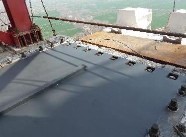 鞍体底板已经安装就位,准备做复合润滑涂层,跨江大桥鞍体鞍座润滑工程系统,公路大桥鞍座与座体间自润滑减磨结构,技术方案:钛晶核处理技术,二硫化钼自润滑减磨涂覆技术,超润滑石墨希氟油涂覆技术,高强二硫化钼合金珠分布技术,抗高极压二硫化钼油脂技术,五种技术优势的叠加形成的复合涂层。